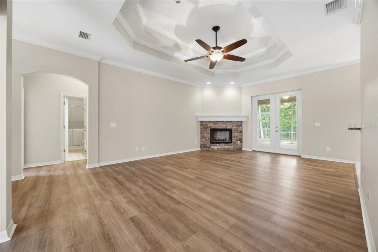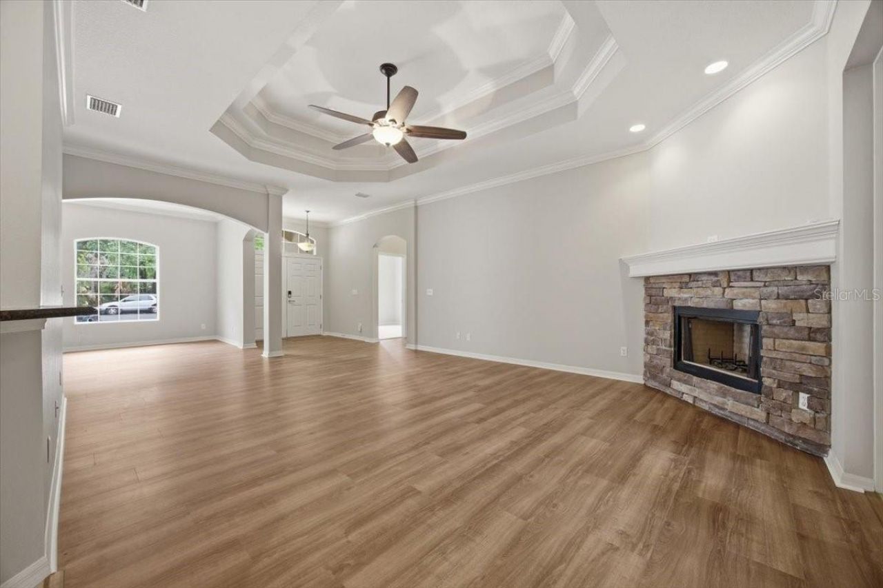 Luxury living in Plant City on a spacious 1.04-acre corner lot. This 4-bedroom, 3.5-bath home features 10-foot ceilings, tray ceilings, and crown molding throughout, along with luxury vinyl plank flooring and decorative ceiling fans.The kitchen offers granite countertops, wood cabinetry, stainless steel appliances, a pantry, and both a breakfast nook and high-top bar seating area. The home includes a wood-burning fireplace, an interior laundry room, and double-pane insulated windows.The primary suite features double sinks, large walk-in closets, a walk-in tiled shower, and a step-up garden tub. An ADA-accessible bath and shower are located in the hall bath.Outdoor features include a huge screened lanai with brick pavers, a pool with direct lanai access, a fenced rear yard, and a separate fenced dog run. The property also includes a detached 24x24 block garage/workshop with electric, along with a 2-car side-entry attached garage.Connected to city water and sewer, with no HOA. The AC system was replaced in 2024. Buyer to verify all information. FHA, VA, Conventional financing available.