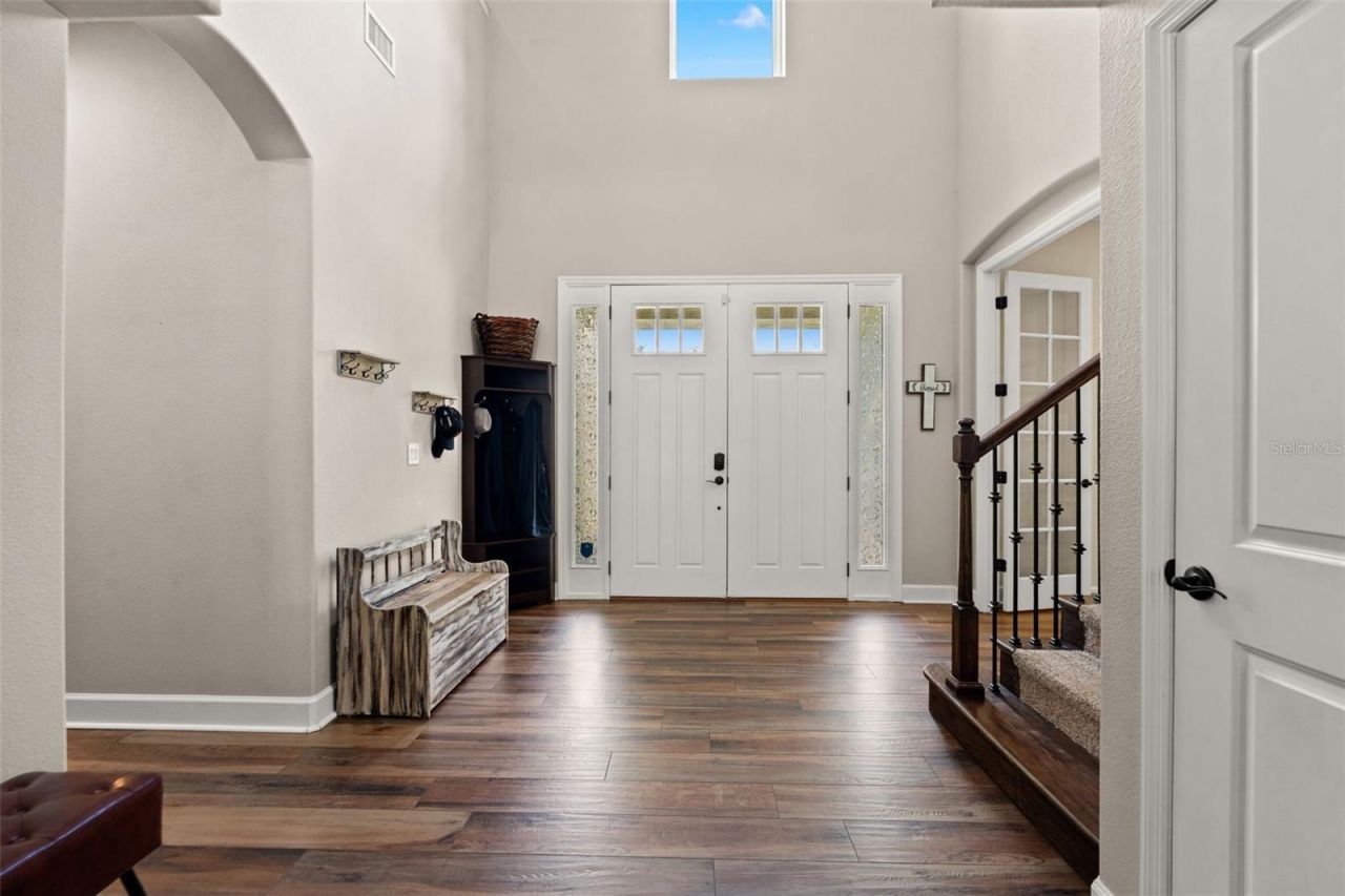 Welcome to a beautifully upgraded Taylor Morrison residence, perfectly positioned on a private conservation homesite with no rear neighbors-offering both peace and a true Florida lifestyle. Located within the gated, maintenance-free village of Gardenia Glen (lawn care included), this home delivers the ideal blend of luxury, function, and ease.This thoughtfully designed floor plan features 4 bedrooms, 3.5 bathrooms, a dedicated office, and a spacious upstairs bonus room, giving you flexibility for everyday living, entertaining, or multi-generational needs.At the heart of the home, the gourmet kitchen is built to impress-featuring a massive center island with high-end granite countertops, natural gas cooking with a GE 5-burner cooktop, double ovens, stainless steel appliances, wine cooler refrigerator, walk-in pantry, and custom pendant lighting. The adjacent breakfast nook is perfectly placed to take in serene conservation views.The main living areas showcase new high-end wood-look tile flooring, complemented by 8-foot doors, 5 1/4-inch baseboards, and a coffered ceiling that elevates the family room. Triple sliding glass doors open seamlessly to the covered lanai, leading out to your private pool and spa, creating a true indoor-outdoor living experience.The primary suite is privately tucked away on the main floor, offering a double-door entry, tray ceiling, crown molding, two walk-in closets, and peaceful views of the conservation. The spa-style primary bath features a large walk-in shower with rain head, garden tub, and dual vanities with granite countertops.Upstairs, you'll find a generous 14x18 bonus room along with three additional bedrooms-one with a private en-suite bath, while the remaining two share a well-appointed bathroom.Additional upgrades and features include:Both HVAC systems replaced within the past 2 yearsPre-plumbed for water and natural gas for a future outdoor kitchenSurround sound on the lanaiElevated cable outlets for wall-mounted TVsResidents enjoy access to Club Connerton, offering a resort-style lifestyle with a community pool, fitness center, playgrounds, and more.This is a rare opportunity to own a move-in ready, highly upgraded home on a premium homesite-where privacy, quality, and lifestyle come together seamlessly.